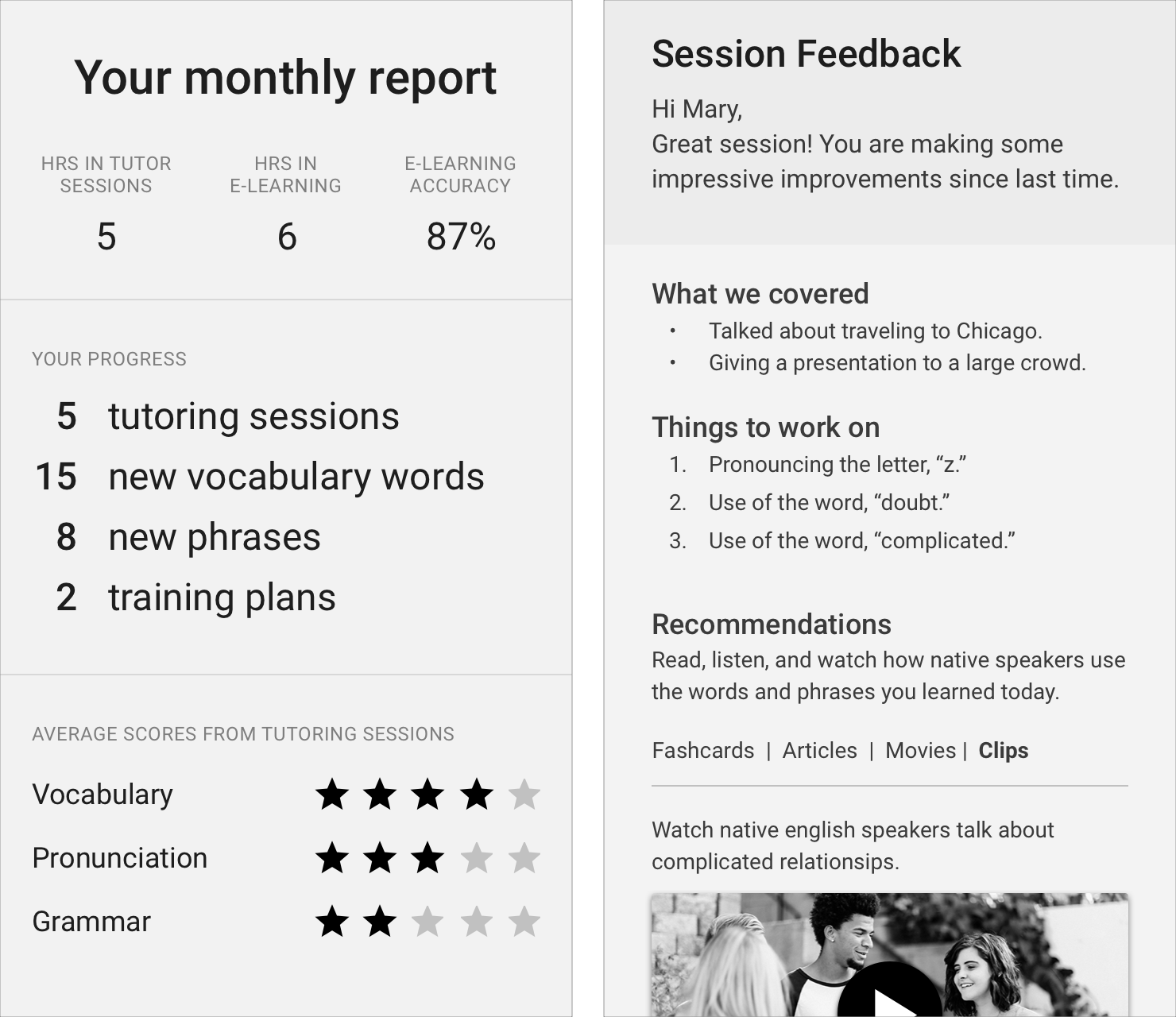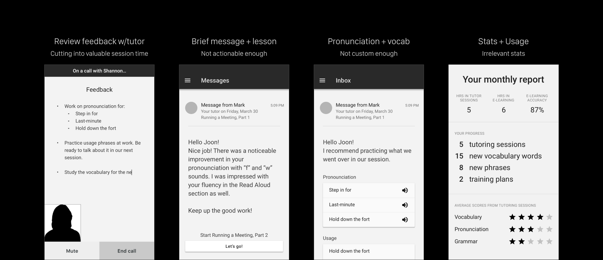 Learners didn't just want encouragement. They wanted real, specific feedback that reflected measurable progress on pronunciation, grammar, and more. Constructive, honest, and actionable. They were paying for progress, not praise.
