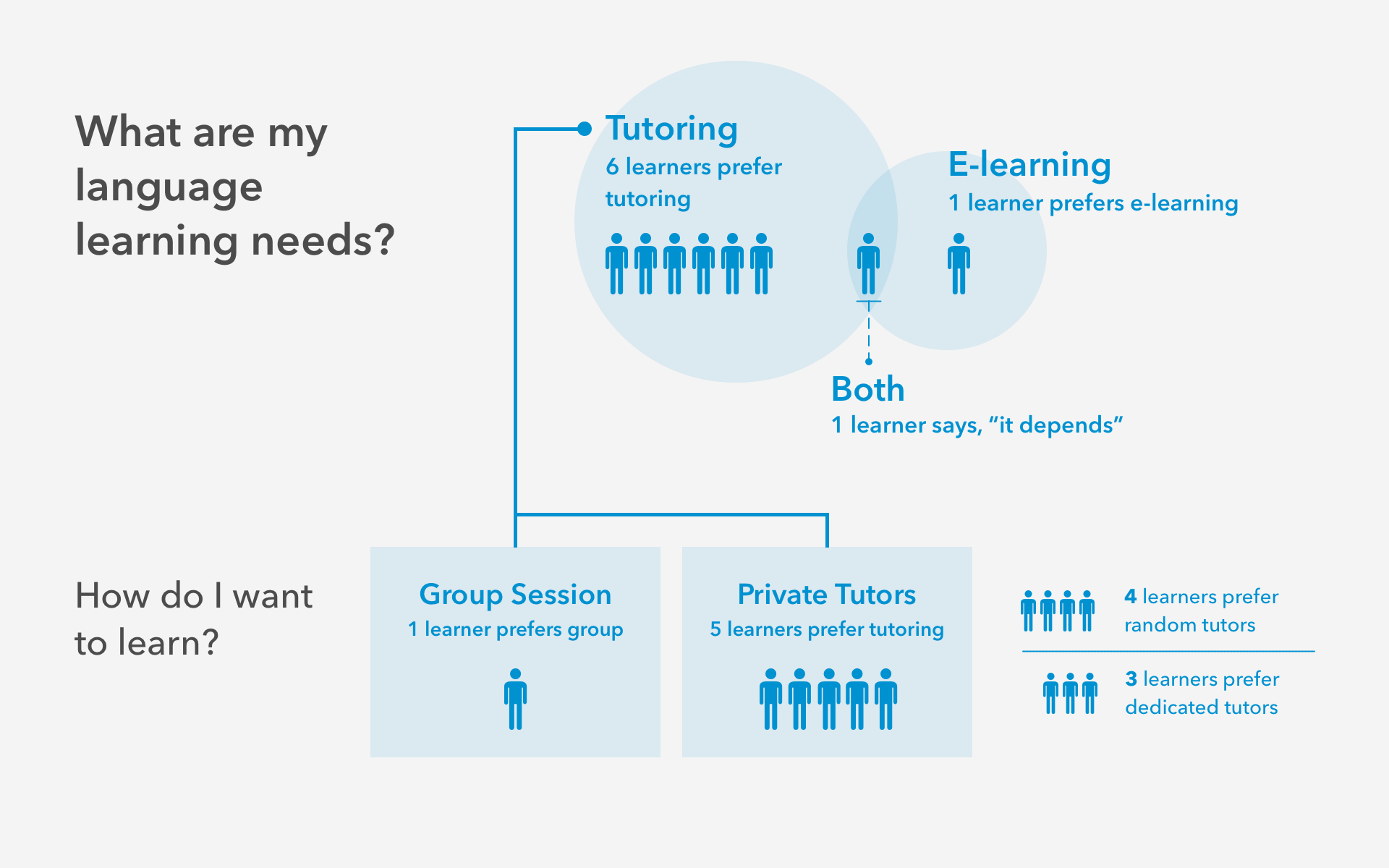 The most surprising insight came here. Learners prioritized finding a time to meet over choosing a specific tutor. As long as tutors met the same standard and were native English speakers, the who mattered less than the when.