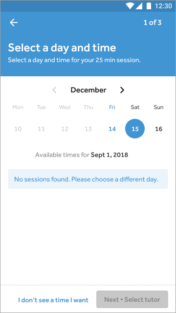 Rather than ending the experience at a dead end, we followed up with a screen prompting learners to enter their preferred booking time. That data fed directly back into decisions about tutor availability in Korea.